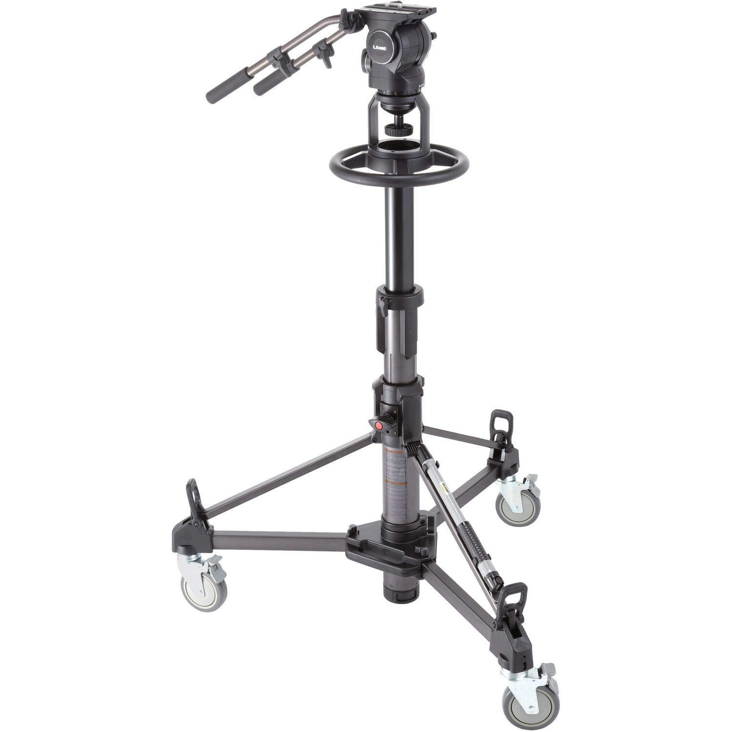 Pedestal Libec RSP-750PD (B) diseñado para la radiodifusión, consiste en el cabezal de fluido RHP75, el cabezal de paneo PH-8B y un pedestal neumático P110 (B) con DL-8B Broadcast Dolly para uso externo. Fácil de configurar y de tamaño compacto, este sistema de pedestal tiene una capacidad de carga máxima de 37.5 lb. Se adapta a muchas cámaras de estudio.