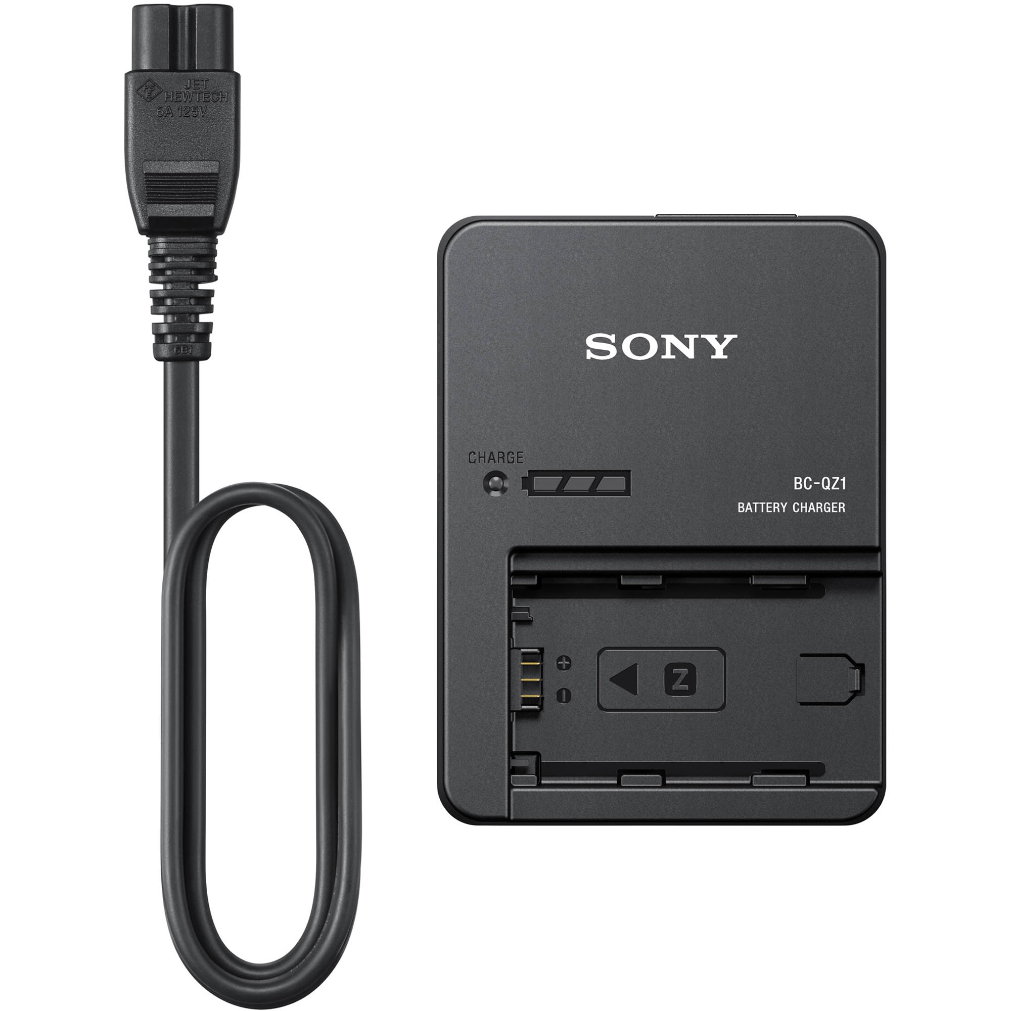 Cargue sus baterías NP-FZ100 con este Cargador de batería Sony BC-QZ1. Capaz de trabajar en todo el mundo con su adaptador de alimentación compatible con 100-240 VCA, este cargador podrá cargar la batería por completo en 150 minutos. También cuenta con un indicador LED para verificar el estado de carga y tiene un diseño delgado con un cable de CA extraíble.