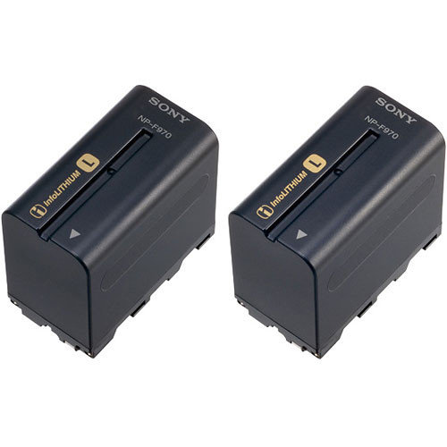 Pack doble de baterías Info-Lithium Sony 2NP-F970 , pequeño y liviano, incluye dos baterías NPF-970/B con microprocesadores incorporados que calculan con exactitud la energía restante en minutos. Los microprocesadores se comunican continuamente con la videocámara para garantizar la visualización de la duración restante de la batería en el LCD de la videocámara y en el visor, para que no se pierda ninguna toma.
